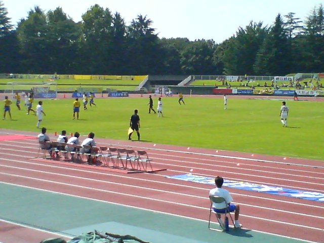 屋根は小さいわ、あくまでも陸上を「やる」為の施設として設計されたせいか、客席からフィールドまで遠いし(それどころか陸上競技を見るにしてもシンドい設計)、ついでに言うと試合時間を知らせる大時計すら無いというとんでもない状況下でのサッカー観戦。